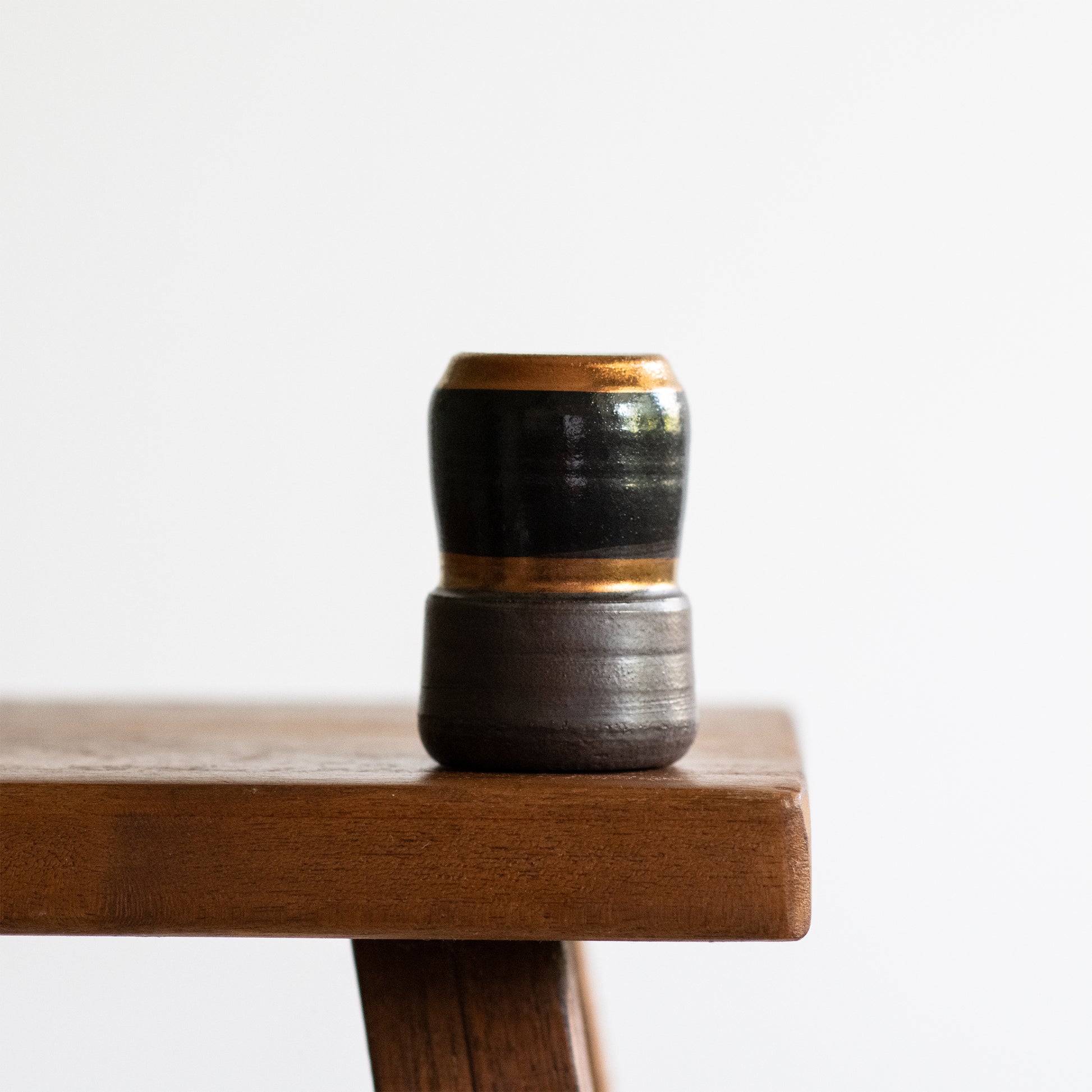 Black copper 1 shaving brush handle is meticulously crafted from black clay and decorated with liquid copper. Expertly wheel thrown, it is designed to perfectly accommodate a 28mm knot.
