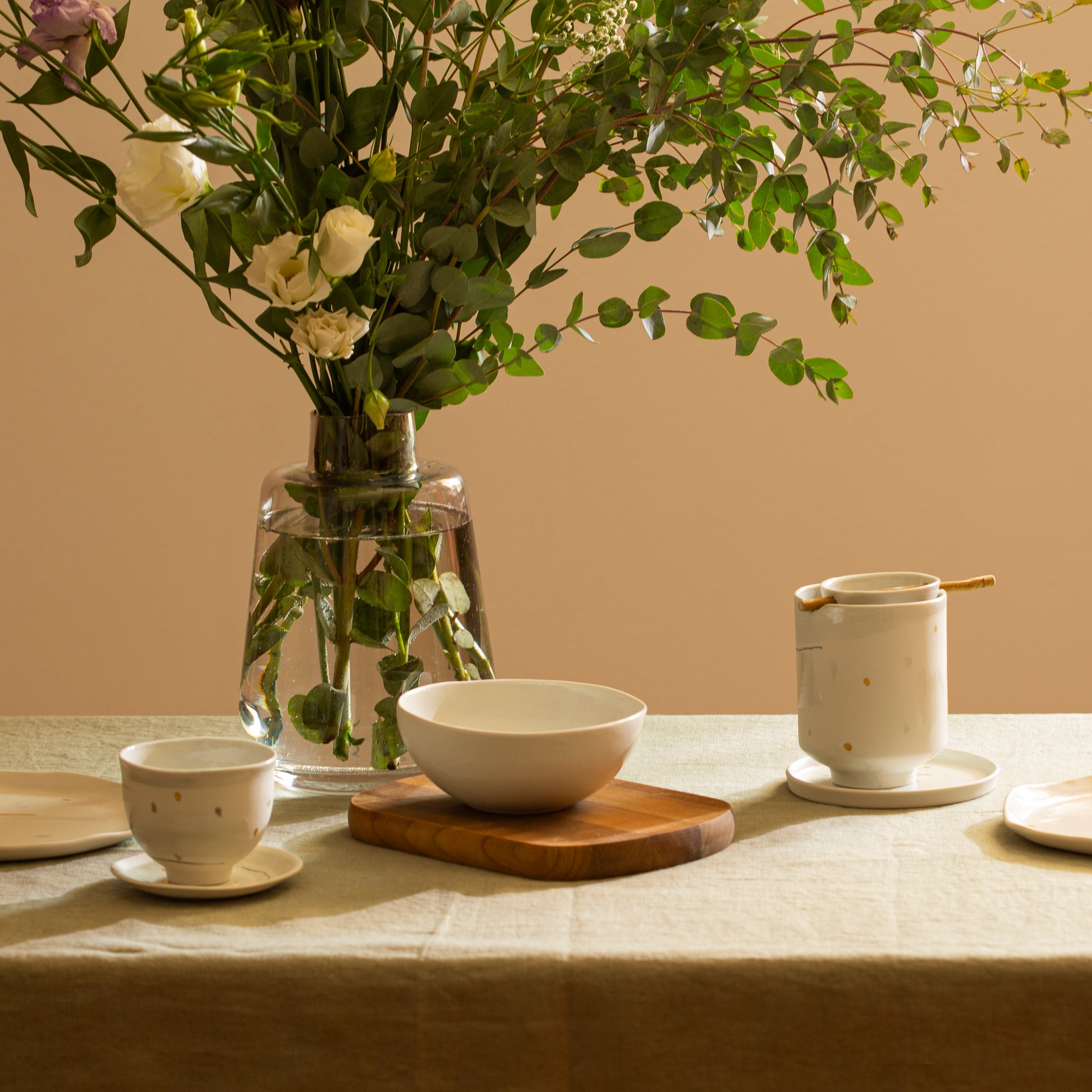 Cereal bowl will be your best companion in the busy mornings. Organically shaped edges gives them charming hand-made character. Made out of fine porcelain, hand painted and decorated with genuine gold, there is no two identical bowls.
