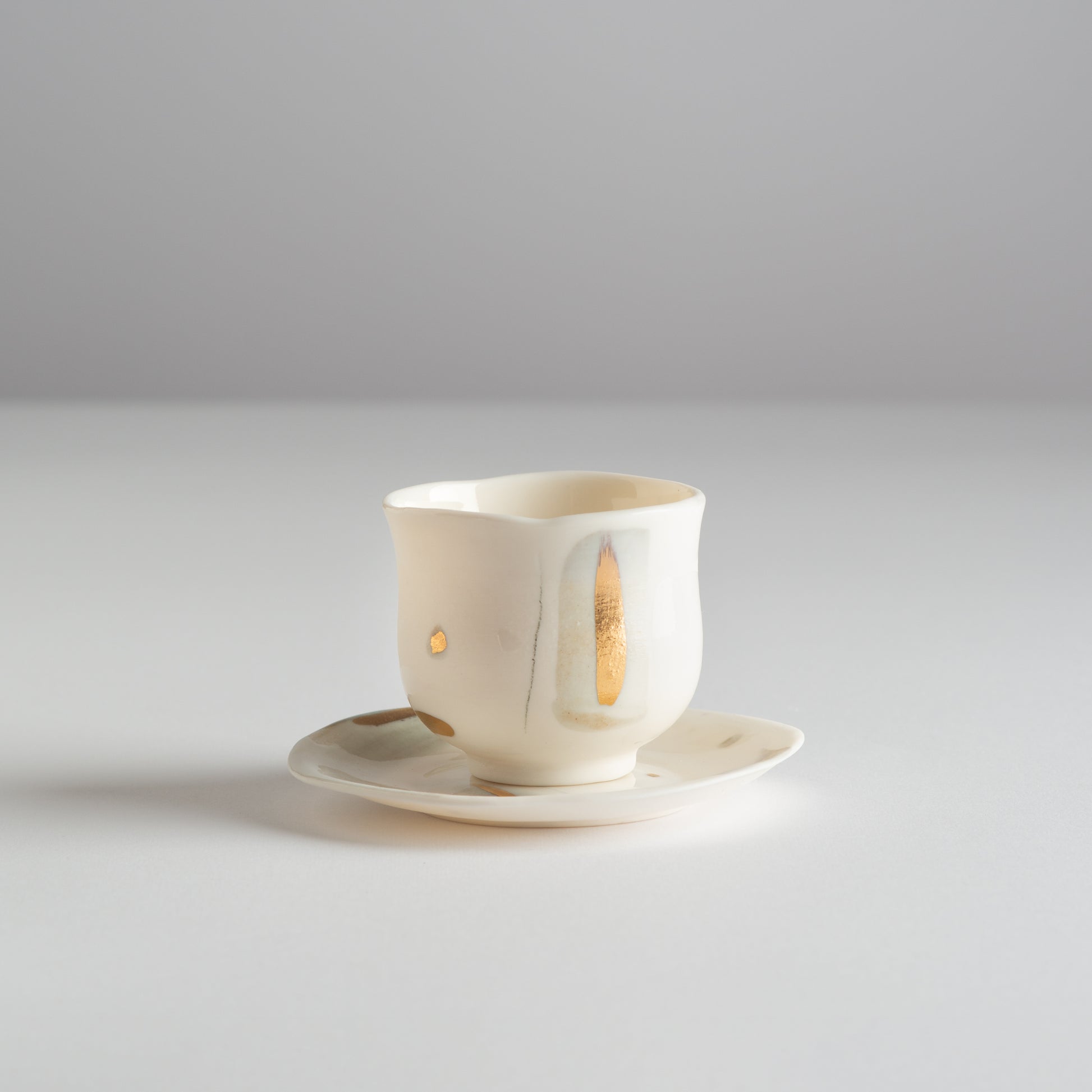 Inspirisana cvetom maka, Kamelia šolje odišu ženstvenošću i elegancijom. Svaka šolja napravljena je od porcelana i dekorisana zlatnim potezima četke. U ove šolje staje oko 80ml tečnosti i savršene su za sve vaše kratke kafe.