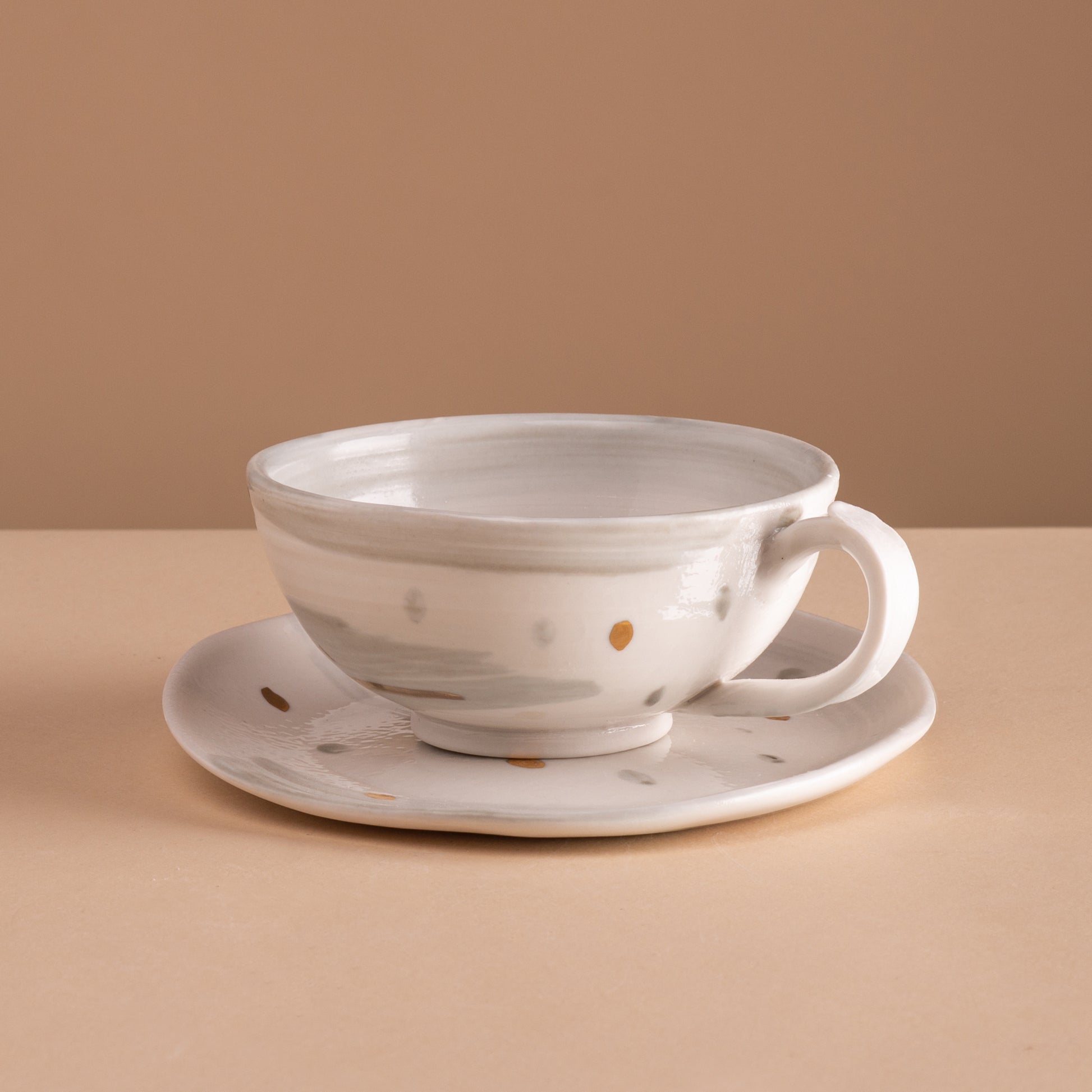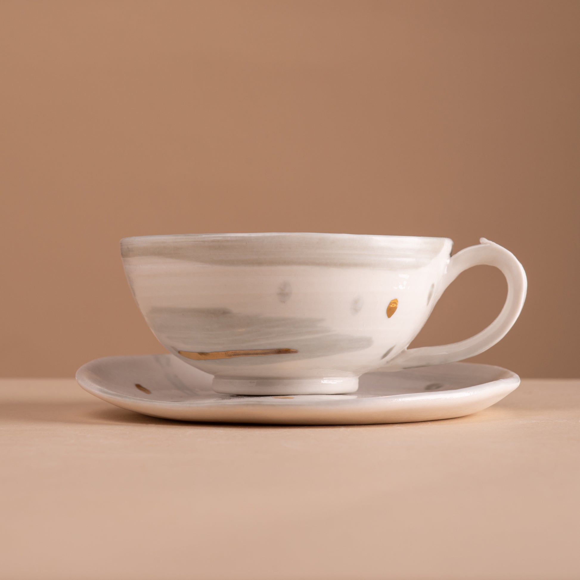 Solea šolja napravljena je na keramičkom točku od fine crne gline. Svaki komad koji nastane na točku je potpuno unikatan, čak i kada se trudim da precizno pratim zadate dimenzije i da ispratim formu zato što je trag prsta ili neke od alatki koje se koriste uvek prisutan. Zahvaljujući ovome, svaki vrteni komad poseduje posebnu auru, mnogo veču nego što je slučaj sa bilo kojom drugom tehnikom izrade koja se u keramici koristi.