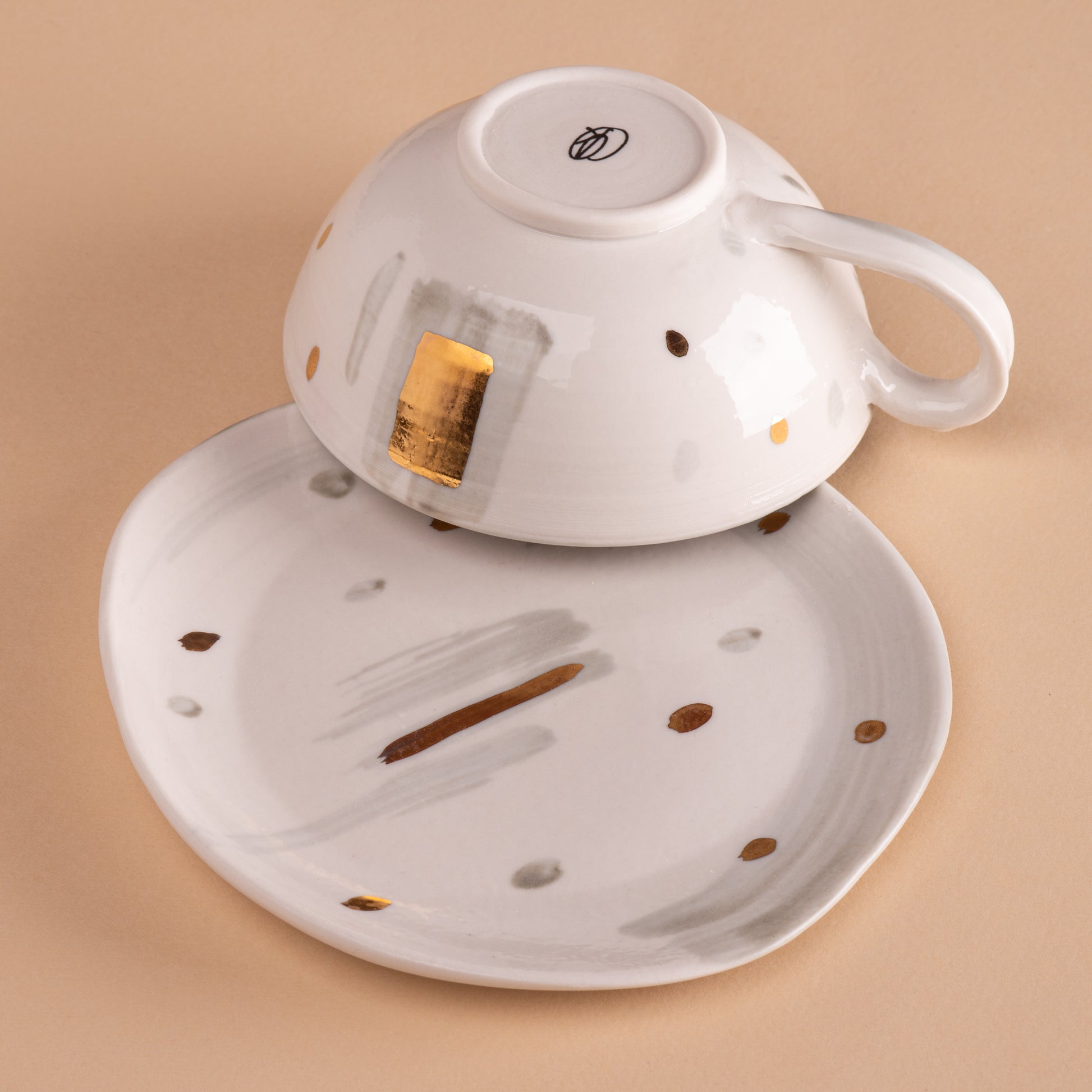 Svaka šolja i tacna oslikane su zlatom, takoda ne postoje dva ista seta.