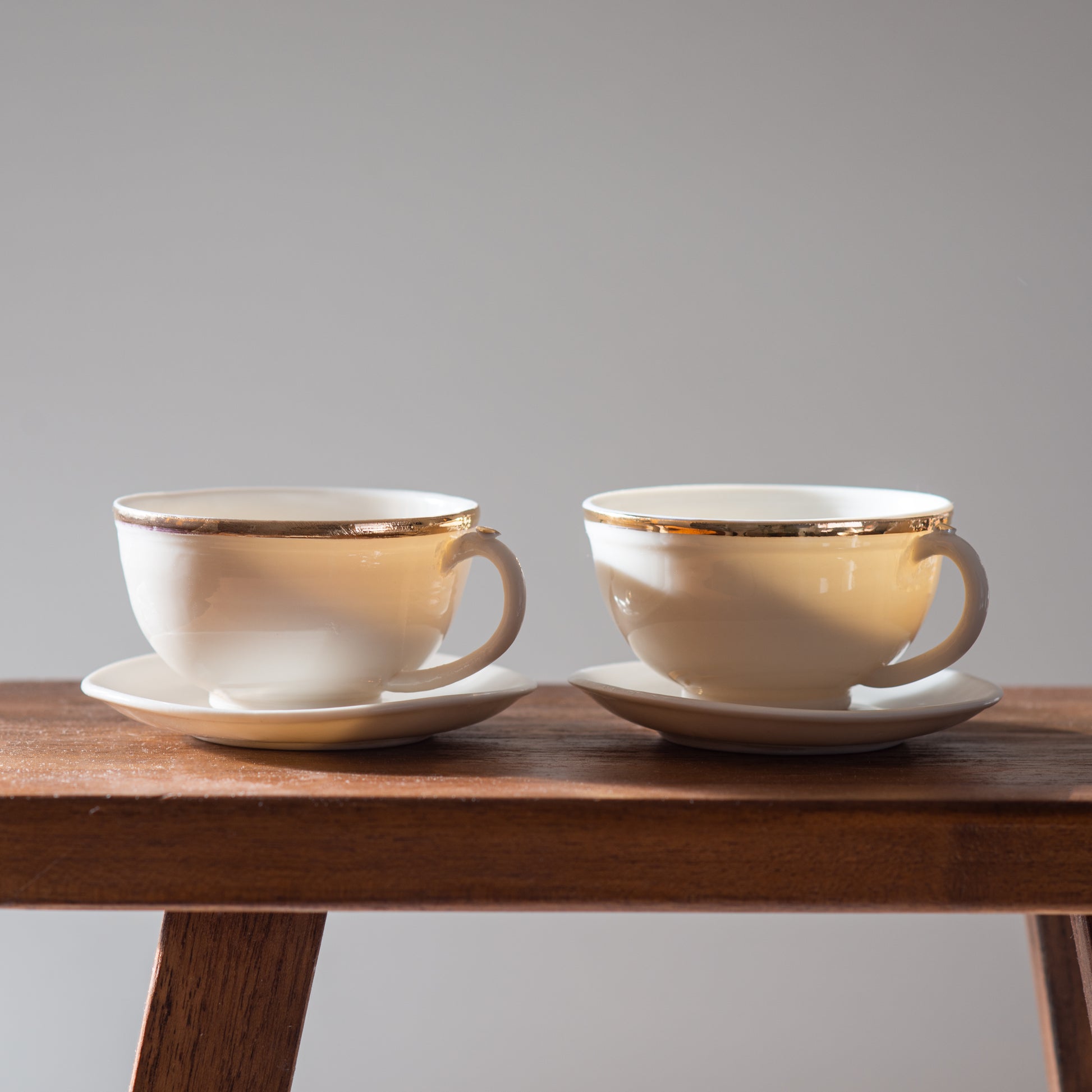 Svaka šolja i tacna se prodaje zasebno i svaka je dekorisana pravim, tečnim zlatom.